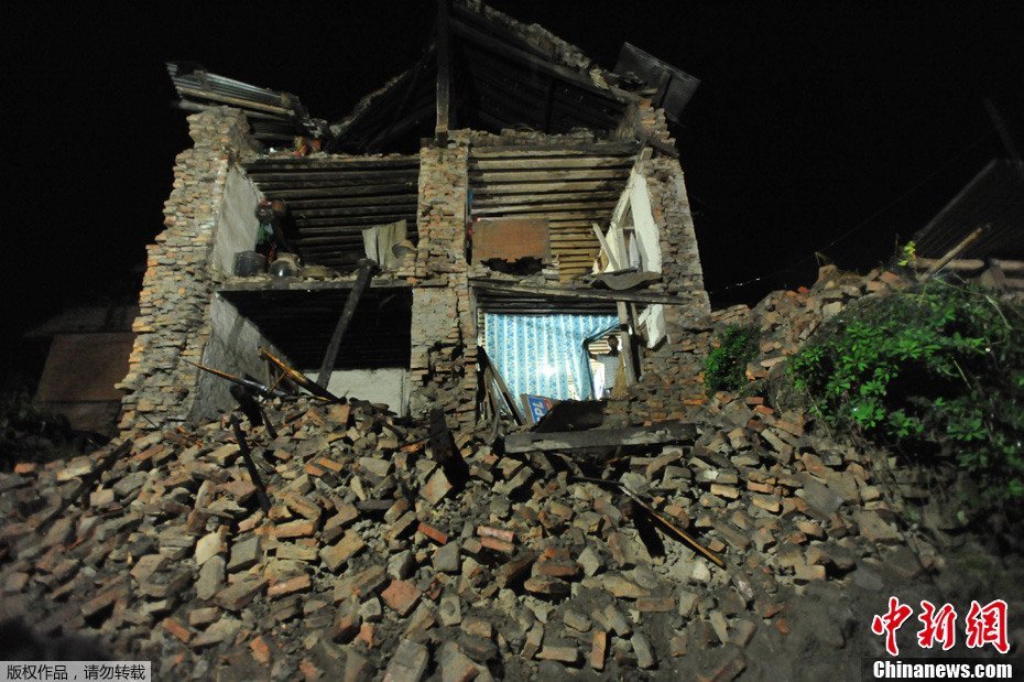 | Ngôi nhà ở Kathmandu, Nepal bị đổ sau động đất (Ảnh: Chinanews) |