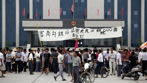 Hôm 23/9, hàng trăm người nông dân ở thành phố Lục Phong thuộc thị xã Sán Vĩ, tỉnh Quảng Đông (miền nam Trung Quốc) đã biểu tình trước cửa trụ sở chính quyền Lục Phong.