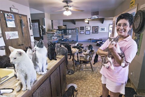 Dự án nuôi mèo của Lynea bắt đầu từ 20 năm trước khi bà mang về nhà 15 con mèo