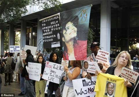 Phiên xử bác sĩ Conrad Murray với cáo buộc giết Michael Jackson giống như một buổi biểu diễn xiếc khi phe phản đối là những người hâm mộ Ông hoàng nhạc pop và những người ủng hộ bác sĩ Murray tập trung bên ngoài tòa án ở Los Angeles vẫy áp phích và băng rôn trong khi cả gia đình Jackson tiến vào phòng xử để tham dự "phiên xử thế kỷ".