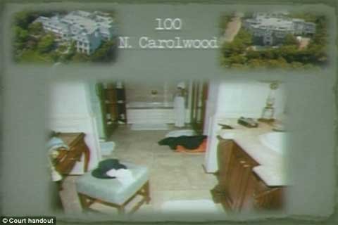 Ánh đèn trong phòng xử vụt tắt khi hình ảnh Michael Jackson được trình chiếu trên màn hình lớn, đó là cảnh ông hoàng nhạc pop đang trình diễn bài Earth Song tại buổi tổng duyệt ở trung tâm Staples, Los Angeles chỉ vài giờ trước khi qua đời.
