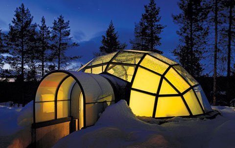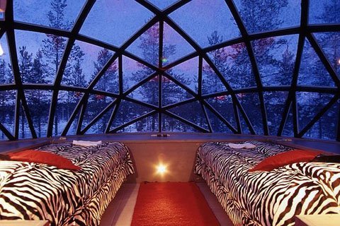 Tại làng du lịch Kakslauttanen phía bắc Phần Lan có 20 phòng khách mái vòm bằng thủy tinh độc nhất vô nhị. Mỗi phòng thủy tinh đều được trang bị đầy đủ tiện nghi như toilet, bàn ghế, giường ngủ sang trọng...