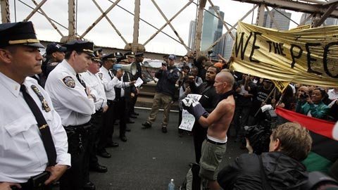 Sáng qua, giới chức thành phố New York (Mỹ) đã phải ngừng giao thông qua cầu Brooklyn vì cây cầu này bị hàng trăm người phong tỏa trong cuộc biểu tình “Hãy chiếm Phố Wall”.