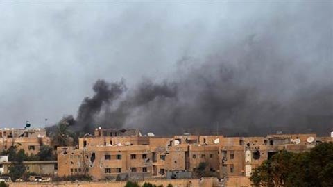 Khói bốc lên trên bầu trời Sirte, nơi đang diễn ra cuộc chiến ác liệt giữa quân