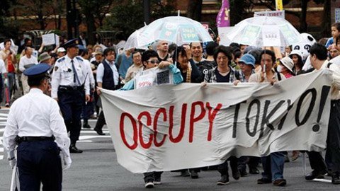 | Người biểu tình tại Nhật Bản tham gia phong trào "Chiếm Tokyo" diễn ra ngày 15/10. (Ảnh: Reuters) |