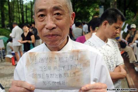 đám đông", Zhang Wenjiang, chụp ảnh cạnh tấm biển mình đã tốt nghiệp đại học.