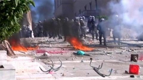Bạo lực đã nổ ra giữa các cuộc biểu tình lớn ở Hy Lạp khi các nghiệp đoàn