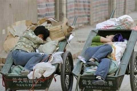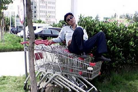 Nhân viên siêu thị làm giấc ngủ trưa trên xe đẩy hàng