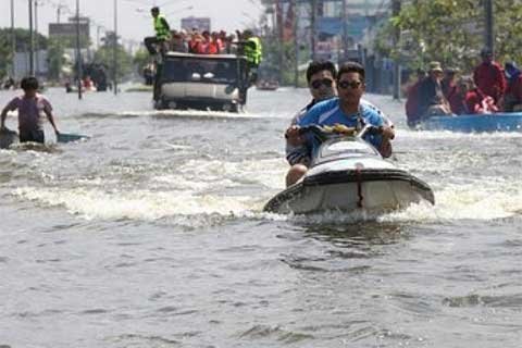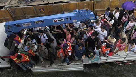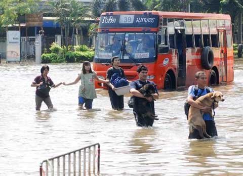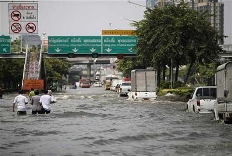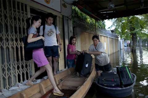 bay và xa lộ để rời thủ đô Bangkok khi dự báo lũ lụt trở nên đáng lo ngại hơn và