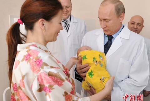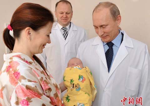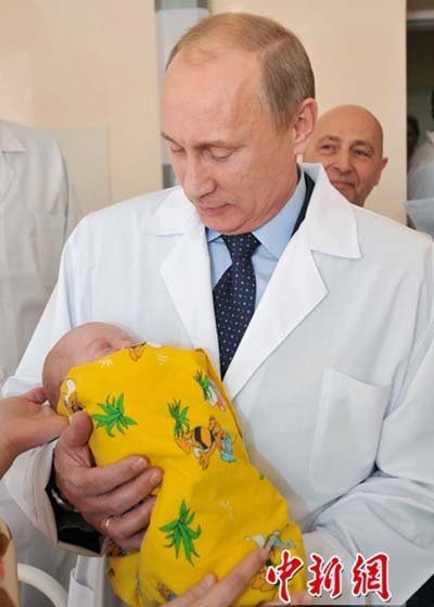 Hôm qua (2/11) Thủ tướng Nga Vladimir Putin đã bế trên tay công dân tượng trưng thứ 7 tỷ của thế giới tại một bệnh viện phụ sản ở thành phố Kaliningrad, miền tây nước Nga với dáng vẻ khá lóng ngóng.