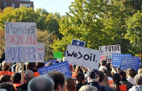 tỏ sự phản đối dự án Keystone XL, một đường ống dẫn dầu có thể đưa dầu từ các sa