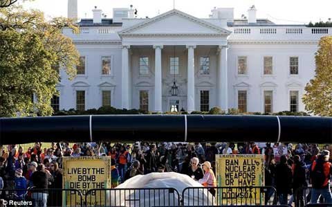 một đường ống dẫn dầu mô hình khổng lồ, đã nắm tay nhau bao vây Nhà Trắng và bày