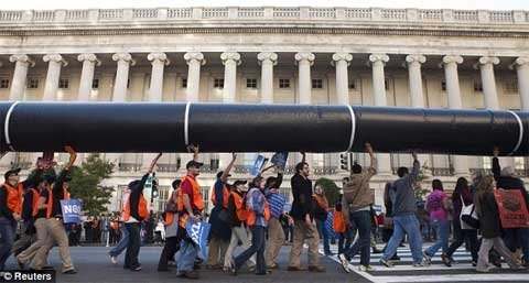 Chính quyền Obama hiện đang cân nhắc xem có nên cho phép triển khai dự án Keystone XL hay không. Dự án đường ống dẫn dầu trên đang là trọng tâm của một cuộc tranh cãi nóng bỏng tại Mỹ giữa những người ủng hộ an ninh năng lượng và tạo việc làm với những người thúc đẩy một nền kinh tế xanh và lo ngại về nguy cơ chuyển dầu dọc theo chiều dài đất nước.