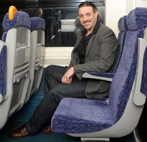 Brandon Mower, 33 tuổi, phải hứng chịu những ánh mắt chế nhạo khi anh bị kẹt vào chiếc ghế tàu trên đường tới dự một cuộc họp kinh doanh và không thể xuống tàu.