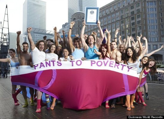 57 người tại Canary Wharf, London đã cùng nhau chui vào chiếc quần lót lớn nhất thế giới.