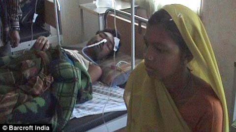 Anh nông dân Kamleshwar Sing được đưa tới bệnh viện bang Chhattisgarh, Ấn Độ vì cơn đau bụng dữ dội.