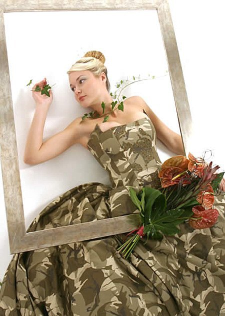Với chiếc váy cưới này, nghệ sỹ Erika Sarkozi muốn gửi tới thông điệp rằng chiến tranh không thể ngăn cản những cặp uyên ương tới với nhau.