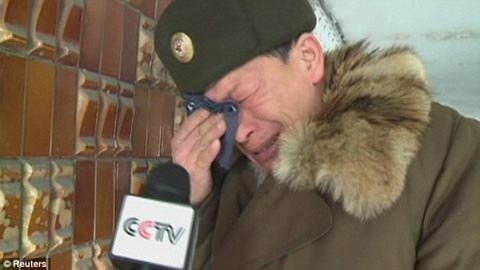 Phát thanh viên Đài truyền hình Triều Tiên khóc không ngừng khi đưa tin về sự ra đi của chủ tịch Kim Jong-il.