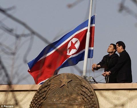 Quốc kỳ tại Đại sứ quán Triều Tiên ở Bắc Kinh được treo rủ.