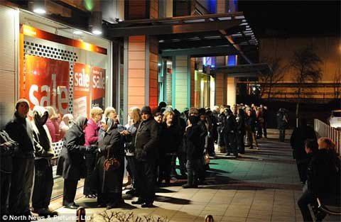 Những nhóm khách đầu tiên bắt đầu xếp hàng bên ngoài cửa hiệu của Selfridges trên đường Oxford từ lúc 10h30 tối ngày Giáng sinh và vào lúc cửa hàng mở cửa 9h sáng ngày 26/12, đã có 2.000 người xếp hàng chờ bên ngoài.