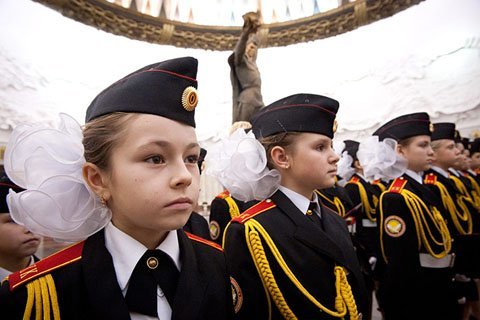 Những em học sinh đứng nghiêm trang trong một buổi lễ tại trường học-Tác giả Sergey Kozmin tới từ Nga.