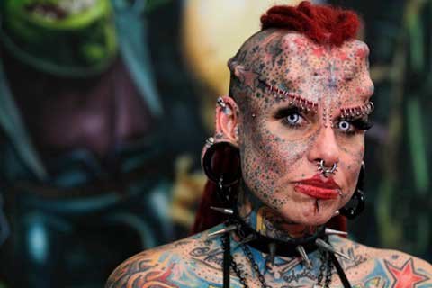 Việc biến đổi cơ thể của Maria gồm cấy sừng bằng titan lên đầu, răng nanh, đeo khuyên tai cực to và móc khuyên vào da. Theo các bản tin trên mạng, Maria nói, những hình xăm và việc biến đổi cơ thể khiến bà cảm thấy bản thân giống như một nữ chiến binh.