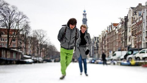 Thời tiết băng giá đã làm phần lớn các con sông, kênh đào ở Amsterdam bị đông cứng. Thành phố này có hơn 100 kênh đào và 1.000 cây cầu.