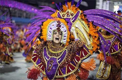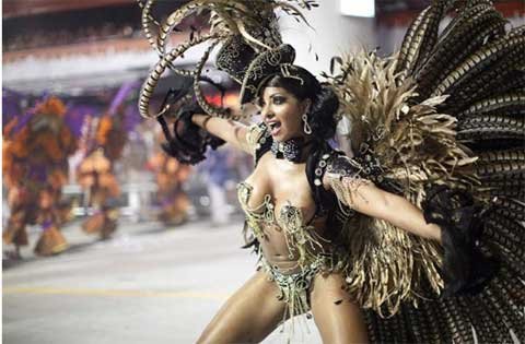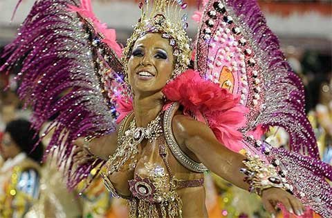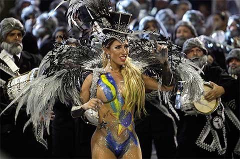 ngưỡng các cô gái xinh đẹp từ nhiều trường dạy samba khác nhau diễu hành trong