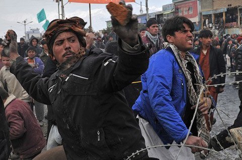 | Hôm 21/1, hàng nghìn người đã biểu tình trước căn cứ Bagram, Afghanistan phản đối lính nước ngoài đốt các bản sao Kinh Koran. (Ảnh: Getty) |