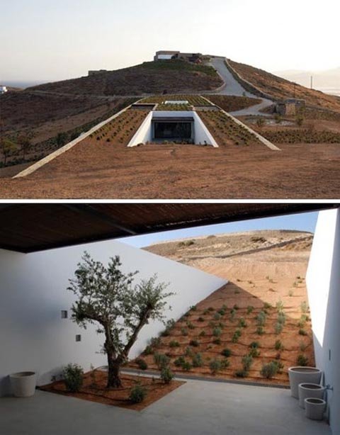 Mẫu thiết kế nhà dưới mặt đất của KWK Promes với các yếu tố hiện đại bên trong. Nhờ lớp đất vả cỏ lợp trên mái, ngôi nhà có thể tiết kiệm được 30% năng lượng.