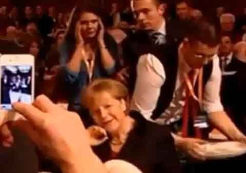 Bà Merkel lấy lại bình tĩnh rất nhanh và tươi cười chụp ảnh.