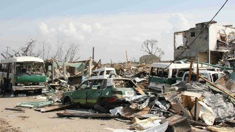 | Những gì còn lại sau vụ nổ kho vũ khí kinh hoàng ở Congo hôm 4/3. (Ảnh: THX) |
