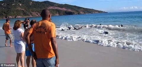 Được biết, những vị khách này đang tắm nắng, đi dạo, nô đùa... trên bãi biển Rio de Janerio khi những chú cá voi bỗng dưng xuất hiện và bị mắc cạn.