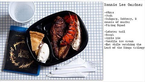 Ronnie Lee Gardener, 49 tuổi - bị xử bắn tại Utah - lại muốn xem phim Chúa tể của những chiếc nhẫn, và thưởng thức một bữa thịnh soạn gồm có: đuôi tôm hùm, thịt bò, táo và kem vani.