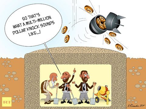 Và tranh biếm họa: Các nhà khoa học Iran: "Tiếng rơi của hàng triệu USD nghe như vậy đấy" |