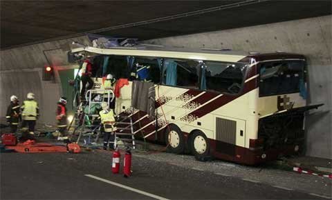 nặng sau khi một chiếc ô tô chở khách cỡ lớn gặp nạn trong một đường hầm ở Thụy