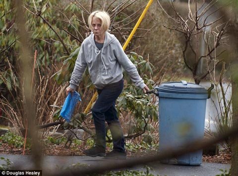 Người phụ nữ 71 tuổi bị nhìn thấy đang kéo một thùng rác ở bên ngoài căn hộ mới của mình tại Connecticut sáng qua.