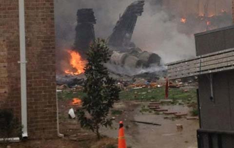 Chiếc máy bay quân sự lao thẳng vào khu dân cư. (Ảnh: AP)