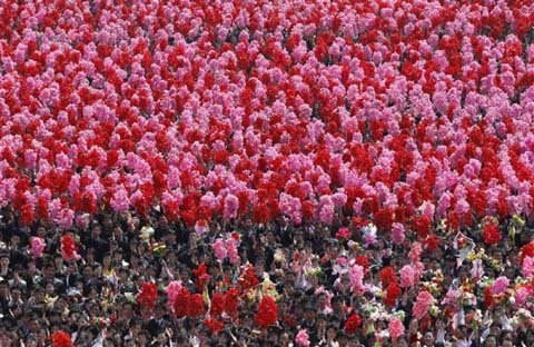 Ngày 9/4, quảng trường Kim Nhật Thành chật kín người với cờ hoa, biểu ngữ trong lễ khánh thành bức khảm chân dung hai cha con ông Kim Jong Il. Khu di tích nơi sinh cố chủ tịch Kim Nhật Thành ở ngoại ô Bình Nhưỡng mỗi ngày đón hàng ngàn lượt người tới thăm.