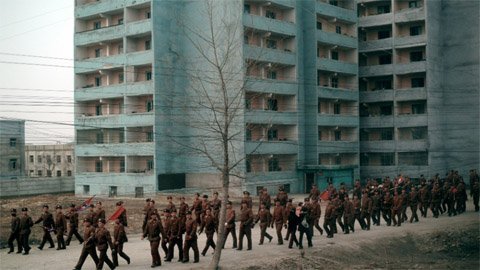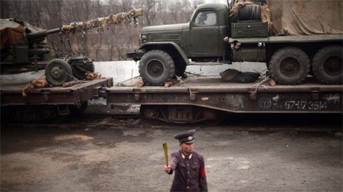 Một binh sĩ Triều Tiên được nhìn thấy từ cửa sổ tàu hỏa trên đường đi từ Bình Nhưỡng tới tỉnh Phyongan ở miền bắc. |