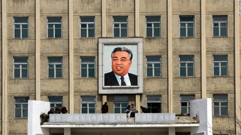 Người dân Triều Tiên cúi mình trước chân dung của người sáng lập Kim Nhật