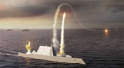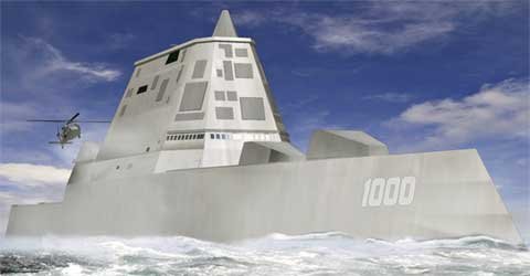 Tàu chiến DDG 1000 USS Zumwalt mới sẽ tập trung và tấn công trên bộ, dựa nhiều vào công nghệ tàng hình tiên tiến để tiến vào bờ trước khi tung ra kho vũ khí đồ sộ trên tàu.