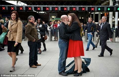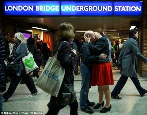 Một đôi nam nữ ôm hôn nhau say đắm ở nhà ga xe lửa, lãng quên những hành khách khác đang hối hả đi qua họ để tới công sở. Đó có thể là một cảnh trong bộ phim lãng mạn của Hollywood song thực tế là...