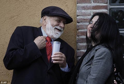 Ông Bernando, 70 tuổi đang trò chuyện với một người phụ nữ còn khá trẻ trung.