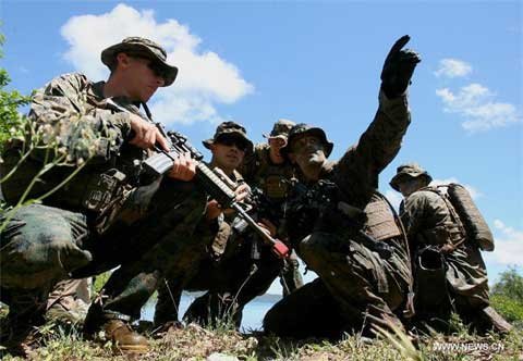 Khoảng 100 lính Mỹ và Philippines hôm 25/4 đã diễn tập tấn công bãi biển ở