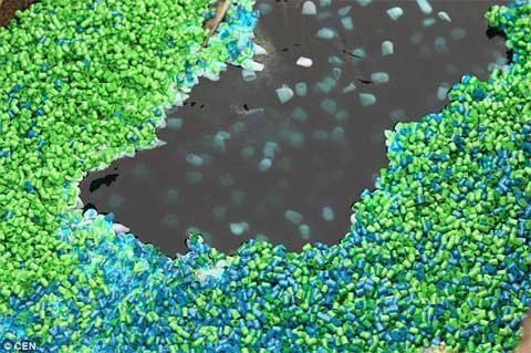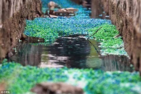 hàng triệu viên thuốc bí ẩn ở rãnh thoát nước, tạo nên đường cống đầy màu sắc.