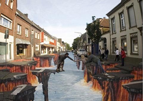 Những năm gần đây, tranh đường phố 3D đã khiến nhiều người không khỏi ngỡ ngàng, bởi sự “như thật” của chúng. Trên thực tế, chúng được vẽ theo hai chiều, nhưng khi nhìn từ một góc nhất định, chúng giống như những hình ảnh ba chiều.