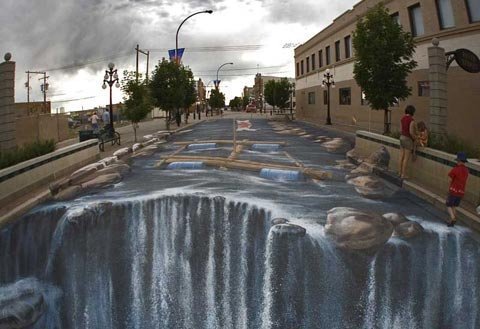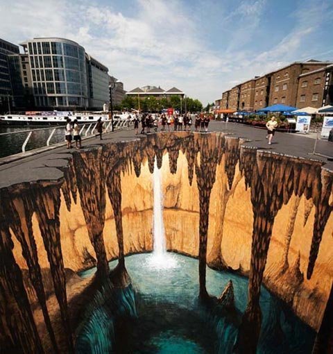 Với nghệ thuật trình diễn độc đáo như vậy, các họa sỹ đã tạo nên những không gian kỳ diệu tới kinh ngạc giữa phố phường, từ những tượng người khổng lồ, những vực sâu thăm thẳm cho tới những con sông, thác nước… chỉ bằng phấn và chì màu.