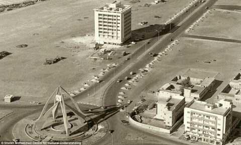 Trong những bức ảnh này, được chụp từ Trung tâm Văn hóa Sheikh Mohammed, Dubai gần như không thể nhận ra mảnh đất này trước đây là một làng chài, không lâu sau đó, các quốc gia vùng Vịnh đã trở nên giàu có nhờ việc phát hiện ra dầu mỏ.
