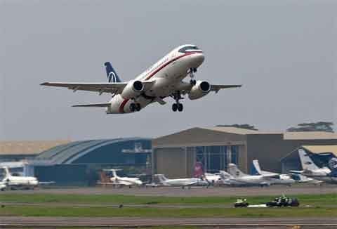 Chiếc máy bay phản lực siêu âm SSJ-100 của hãng Sukhoi là chiếc máy bay thương mại đầu tiên được thiết kế và xây dựng sau khi Liên Xô tan rã hai thập kỷ trước.